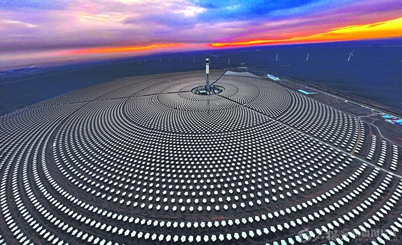 俯瞰位于伊吾县淖毛湖镇的中国能建哈密熔盐塔式5万千瓦光热发电站(2025年11月10日无人机摄)。该电站设计年均发电量约2亿千瓦时,可满足6.19万户家庭全年用电需求。马新亮 摄