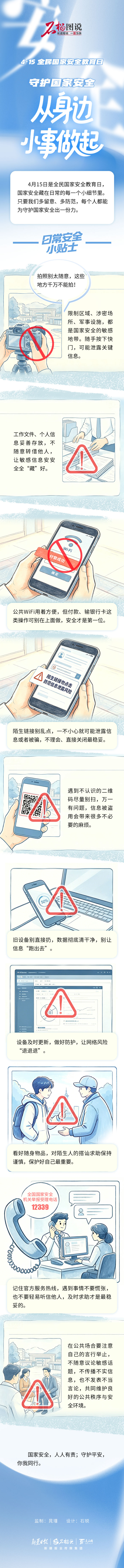 4月15日是全民国家安全教育日,国家安全藏在日常的每一个小细节里。只要我们多留意、多防范,每个人都能为守护国家安全出一份力。