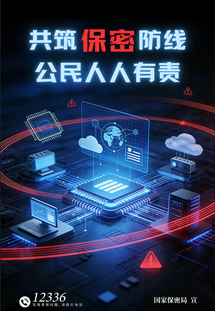 此外,中央保密办(国家保密局)还设计推出了保密公益宣传海报《共筑数智时代保密长城》、《数智红线》,提示社会公众增强安全保密意识,共同筑牢维护国家秘密安全的人民防线。