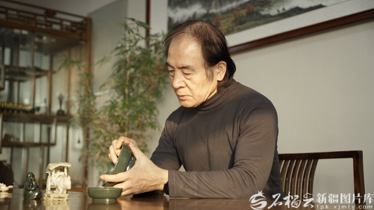 扎根新疆这片热土多年,张连杰始终没有忘记将新疆浓厚的文化底蕴融入玉雕创作,让海派技艺与新疆玉雕撞出别样火花。“我经常去克孜尔千佛洞等地参观,那些壁画上的色彩和纹样,每次看都能给我新的灵感。”他说自己的作品,从来不是单纯复制传统样式,而是在保留其细腻灵动精髓的同时,融入新疆的自然与人文元素——坚韧的胡杨、饱满的葡萄,还有各民族服饰上的精美纹样,都被他巧妙地呈现在玉石之上,既传递出传统与现代交融共生的美好理念,也让海派玉雕有了鲜明的新疆印记。