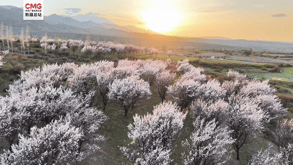 镜头中,漫山遍野的杏花褪去苞衣,竞相舒展绽放,粉白花朵如云似霞,密密匝匝缀满枝头,层层铺展在青山幽谷间。春日暖阳洒下,给花海镀上一层柔光,清风拂过,花枝轻摇曼舞,花瓣簌簌飘落,暗香浮动沁人心脾。