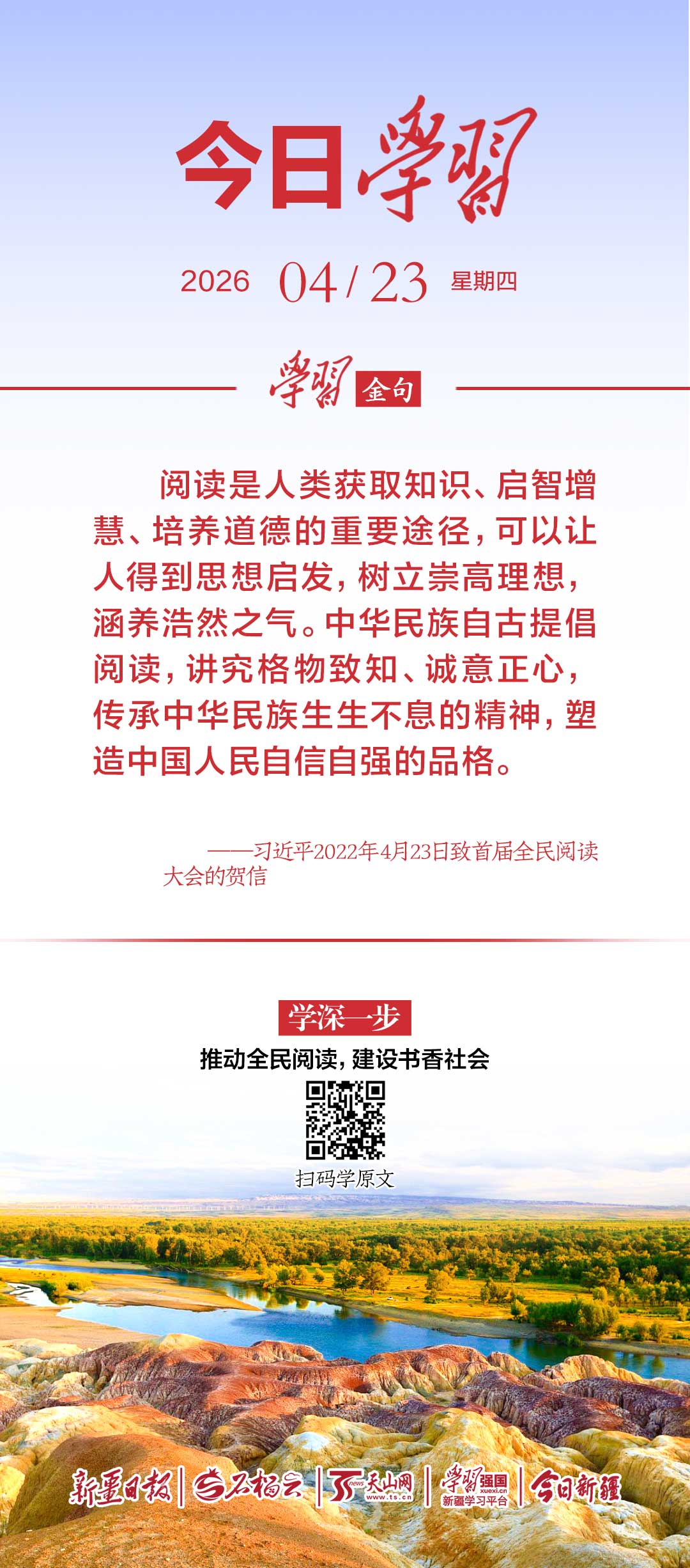 ——习近平2022年4月23日致首届全民阅读大会的贺信