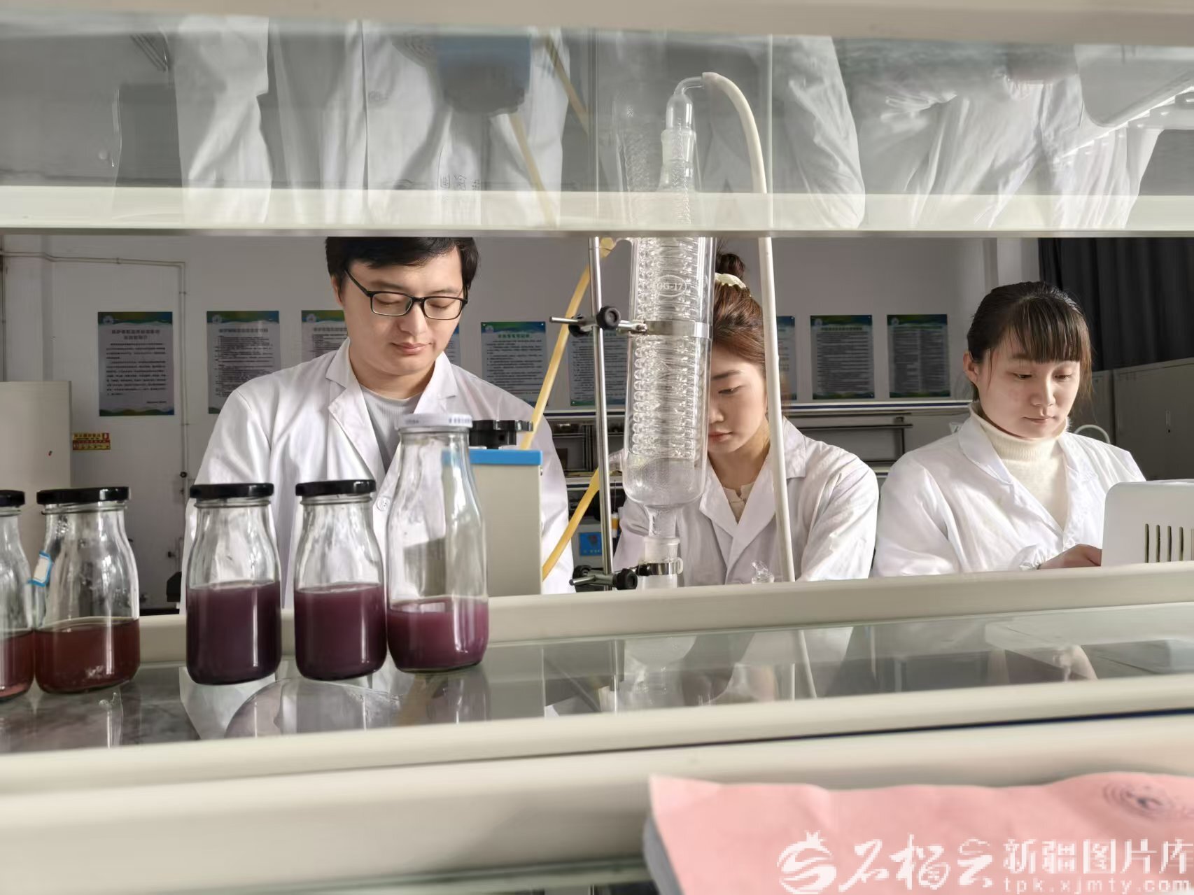 新疆理工学院特色饮食加工与装备产业学院实验室里,学生们在检测慕萨莱思品质。贺铁梅 摄