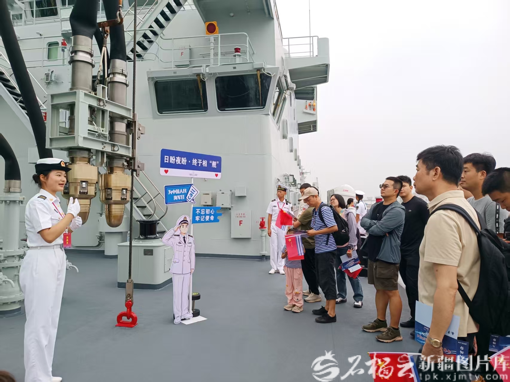 4月23日,我国自主研发建造的903型综合补给舰乌伦古湖舰,首次向公众开放,来自全国各地的游客登舰参观,近距离感受大国战舰风采。天山网-新疆日报记者 张冬梅摄